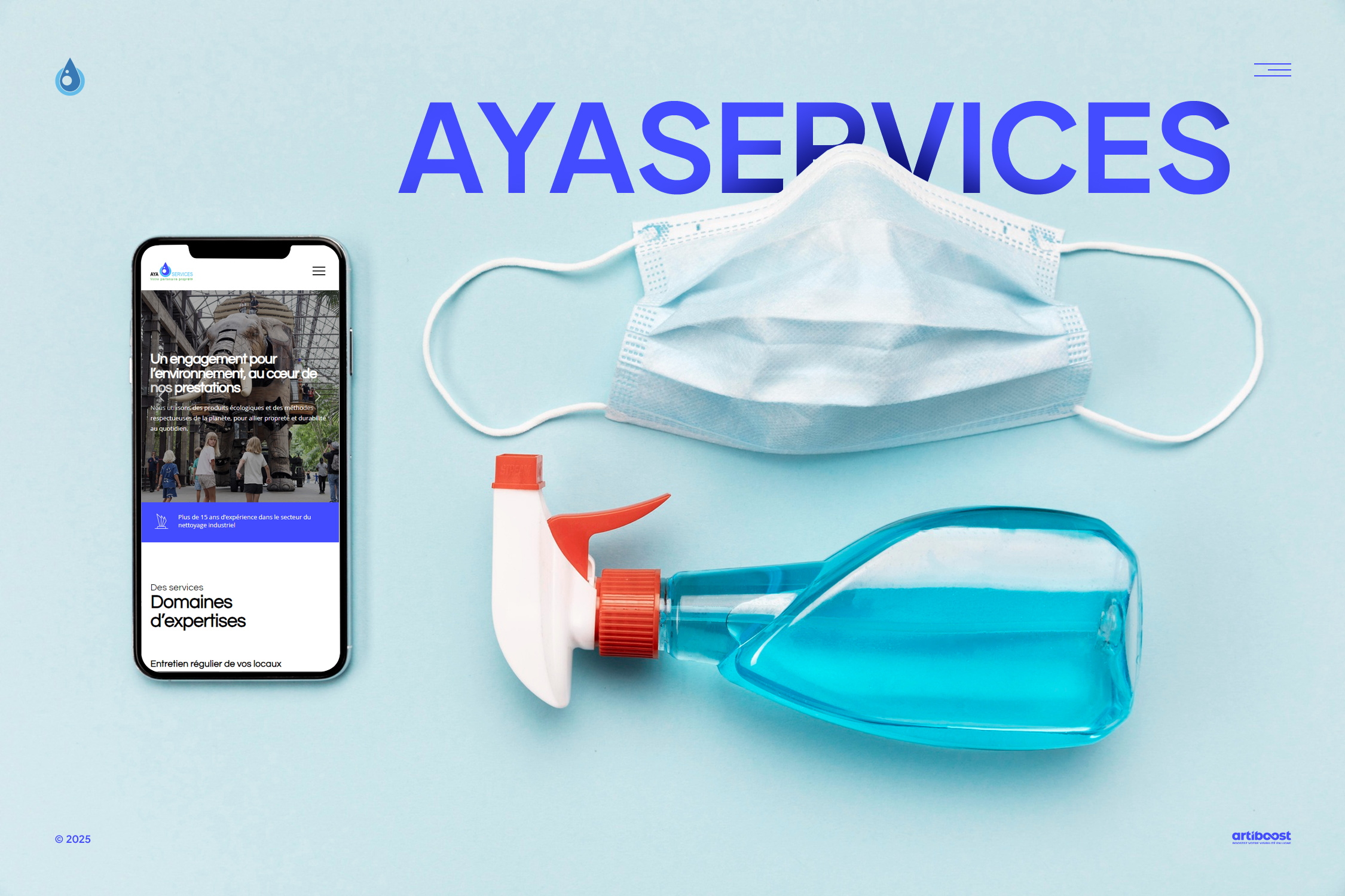 Accompagner Ayaservices dès le premier trait : conception d’un logo qui incarne la pureté des lignes et la fluidité des gouttes d’eaux, suivi du développement d’un site web immersif où chaque prestation d’entretien redonne aux clients des espaces propres et éclatants.